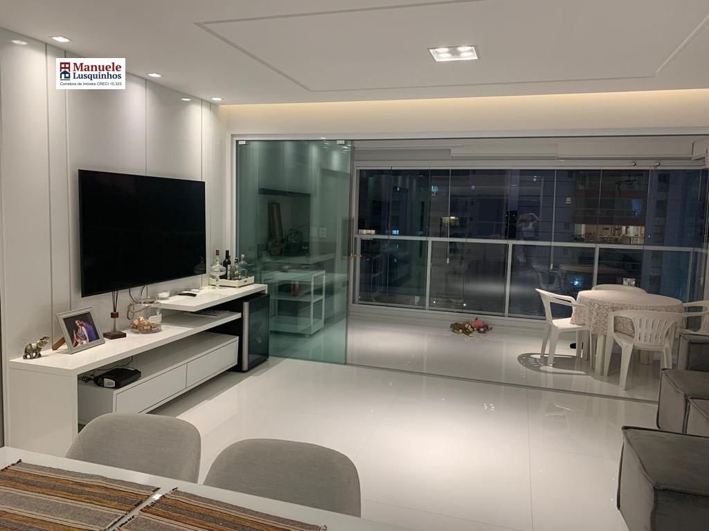 O apartamento possui116m² com 3/4, sendo 1 suíte com closet, banheiro social, lavabo, home office, área de serviço com banheiro, varanda gourmet com churrasqueira, reiki para fechamento da sacada,sala integrada ou não com a varanda (há blindex para os dias em que houver interesse em fechar) e2 vagas de garagem.
