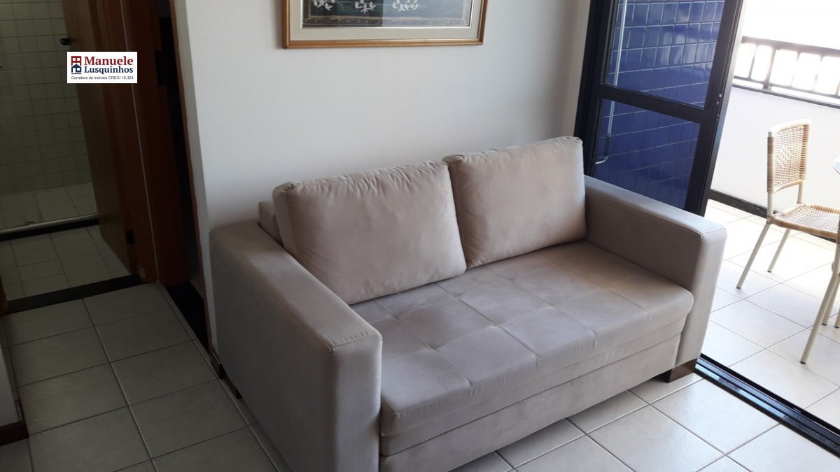 Excelente apartamento de 40m² com 1 quarto, sala, banheiro, cozinha, lavabo, área de serviço e varanda.