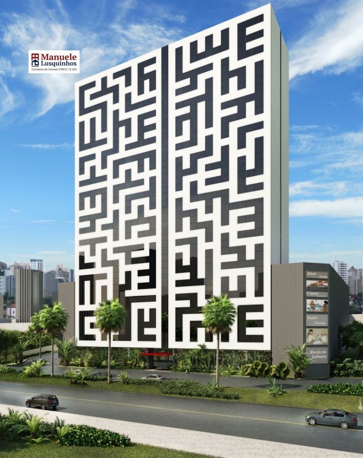 As 384 salas comerciais distribuídas por 16 pavimentos possuem cerca de 27,65m² e uma vaga privativa de estacionamento